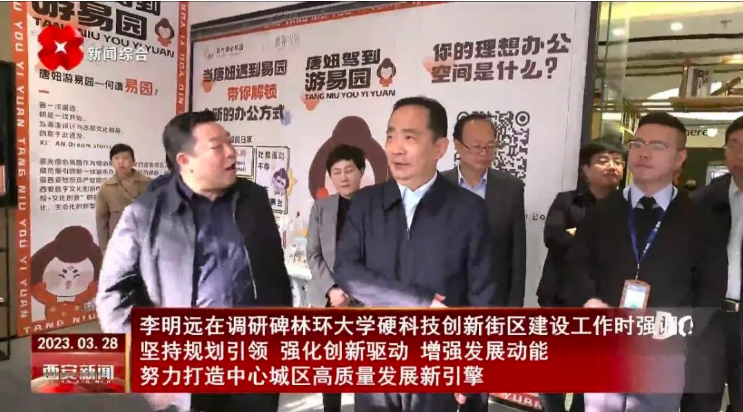 3月28日,西安市委副書記、市長(zhǎng)李明遠(yuǎn)前往碑林區(qū)調(diào)研環(huán)大學(xué)硬科技創(chuàng)新街區(qū)建設(shè)有關(guān)工作,參觀并詳細(xì)了解星光德必易園運(yùn)營(yíng)模式和現(xiàn)況。