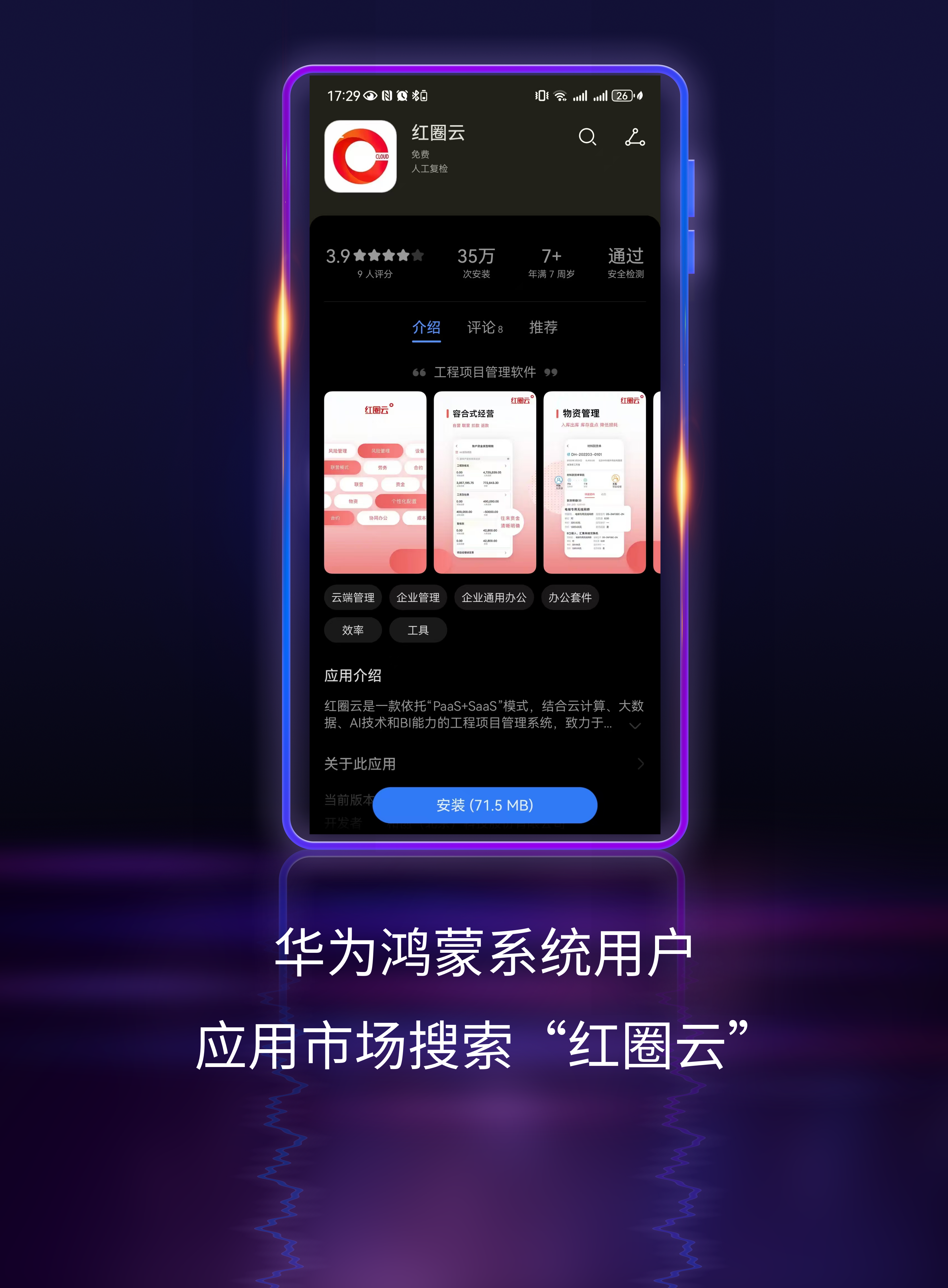 鴻蒙系統用戶可前往華為應用市場搜索“紅圈云”