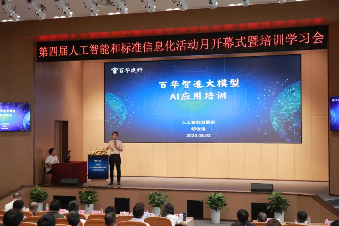 隨后,公司人工智能發(fā)展部副總經(jīng)理鄒佳運(yùn)發(fā)布《人工智能與標(biāo)準(zhǔn)信息化成果與未來發(fā)展》報(bào)告。他指出,“百華智造”管理系統(tǒng)已覆蓋公司94%的業(yè)務(wù)流程,實(shí)現(xiàn)跨部門數(shù)據(jù)共享,AI助手、AI視覺識別及AI報(bào)表分析等技術(shù)已全面落地應(yīng)用。未來將重點(diǎn)強(qiáng)化預(yù)算管理模塊功能,通過授權(quán)精簡審批流程,深化AI應(yīng)用,助力項(xiàng)目提質(zhì)增效。