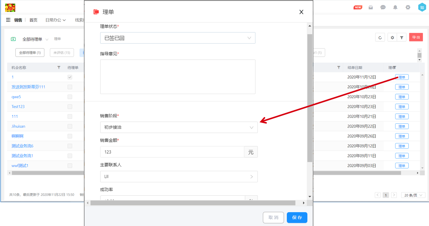 新版的理單功能在理單完成后數據不會消失,直接顯示到指定的理單階段,方便管理人員進行查看。理單操作不僅限于負責人和直屬上級,也可以由其他有權限的人理單。這樣更高級別的管理人員也可以基于實際情況對銷售人員進行直接的指導。同時,新版本還支持重復理單,方便管理者對一線銷售人員多次指導。
