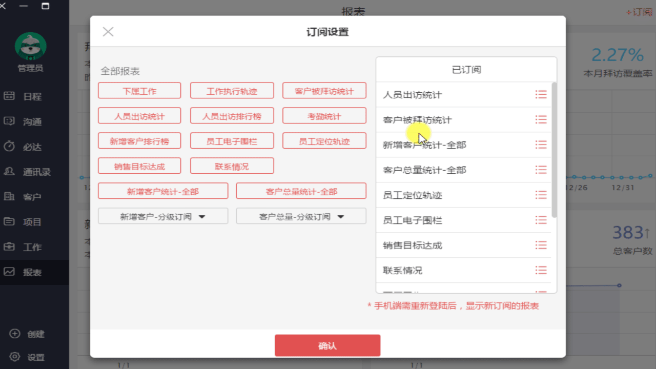 ? 通過「人員出訪統(tǒng)計」和「客戶被拜訪」報表中顯示的數(shù)據(jù),你可以對員工的銷售過程分析,評估銷售員的銷售行為過程;