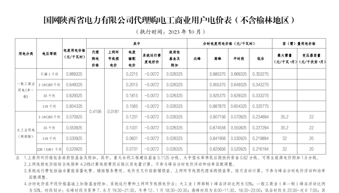 近日,陜西電網有限責任公司公布了陜西省2023年10月電網?代理購電價格?,為0.4016元/千瓦時,與2月電網代購用戶電價0.466元/千瓦時對比,下降了0.0644元/千瓦時,降幅13.82%。