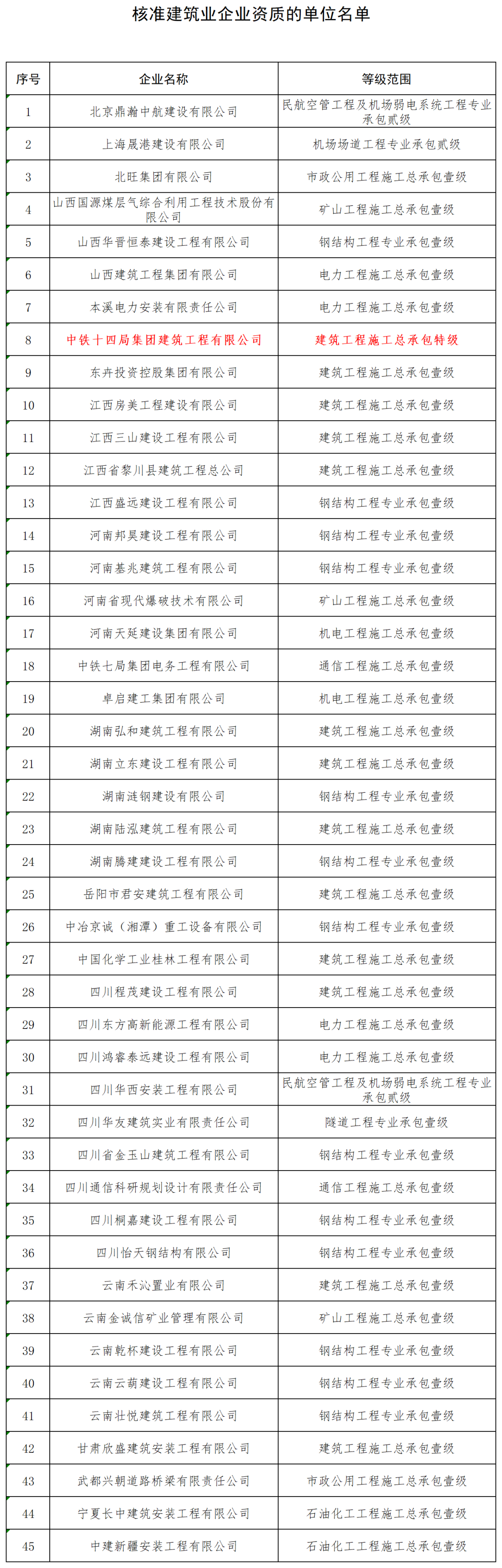 最新一批建設工程企業(yè)資質名單公布!1家建企“升特”!
