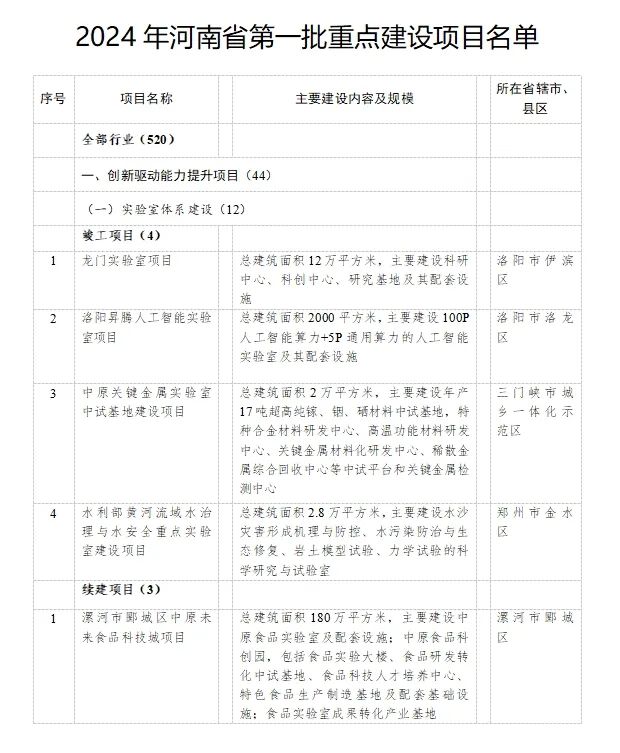 點擊查看完整項目清單:2024年河南省第一批重點建設項目名單