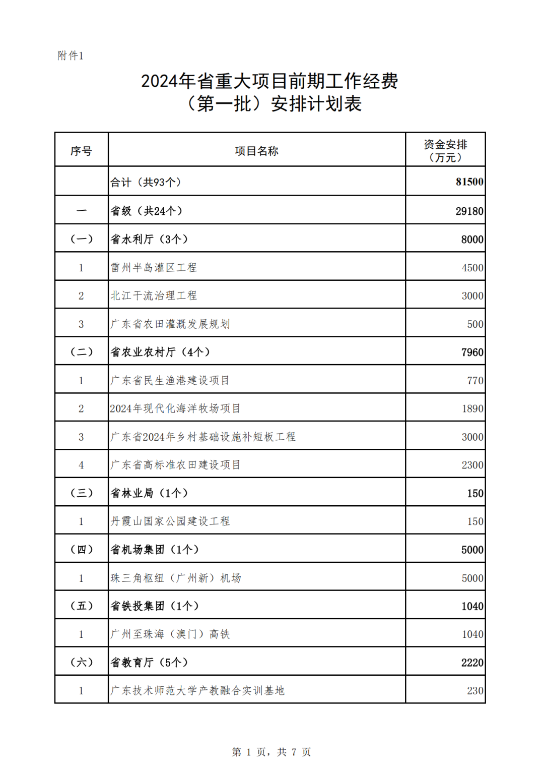 廣東省2024年省重大項目前期工作經(jīng)費安排計劃(第一批)公示