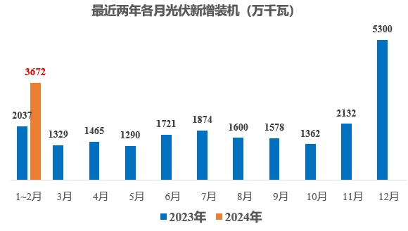 2024年1~2月,光伏新增裝機規模為3672萬千瓦,同比增長80%!風電新增裝機規模為989萬千瓦,同比增長69%!
