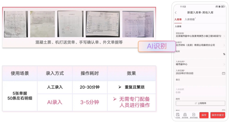 在成本控制方面,紅圈系統提供超預算實時預警功能,使企業能夠及時采取整改措施,提升成本控制能力。紅圈AI錄單助手通過自動識別各類單據,實現從圖像識別到系統錄入的秒級閉環,減少90%人工操作,提升成本歸集效率。系統自動歸集和匯總人、材、機的實際成本,省時省力,確保成本數據實時可控。
