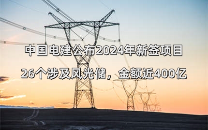 中國電建公布2024年新簽項目,26個涉及風光儲,金額近400億